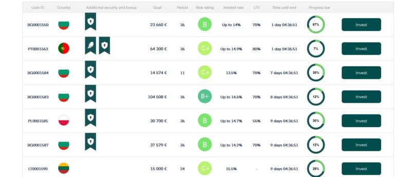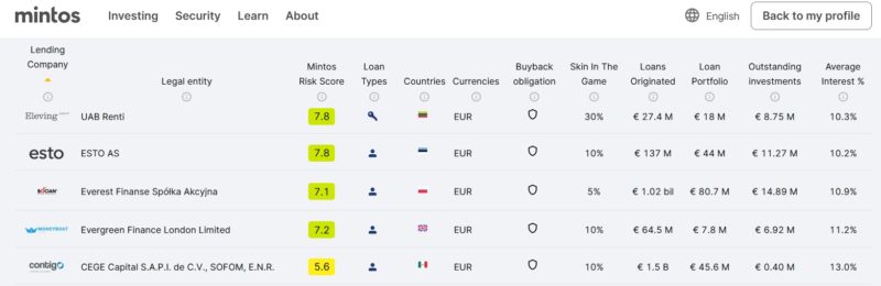 Пример списка МФО на самом известном P2P-маркетплейсе MINTOS