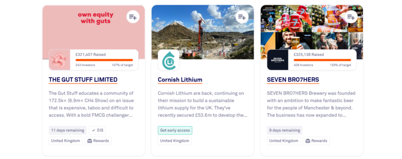 Таблица инвестиционных краудфандинговых проектов на платформе CrowCube